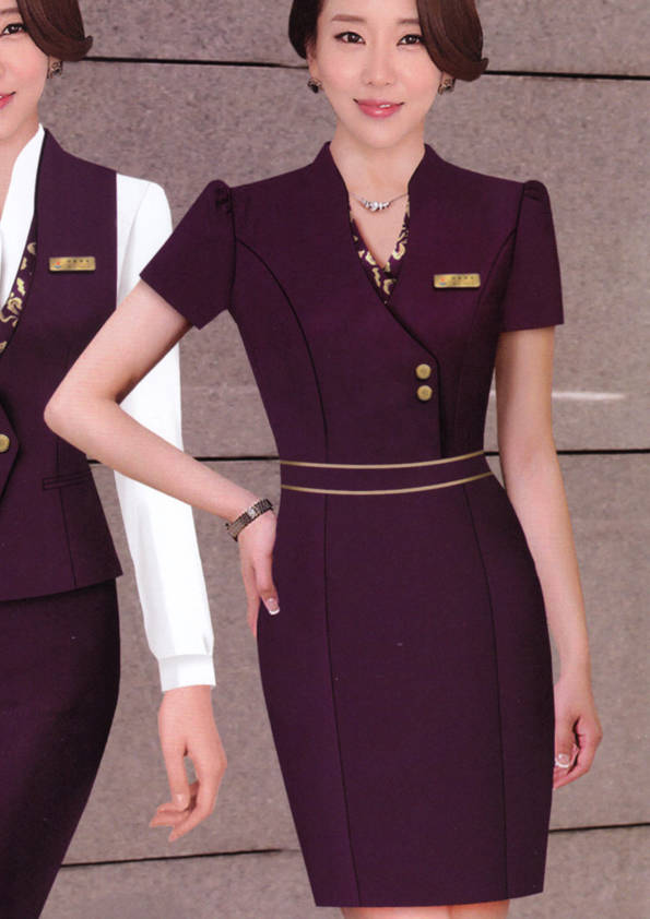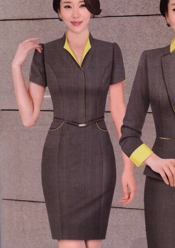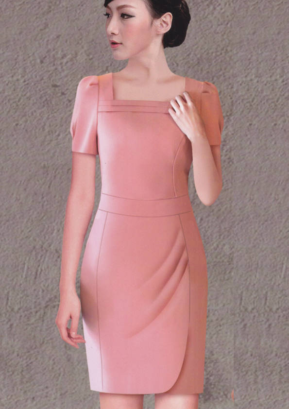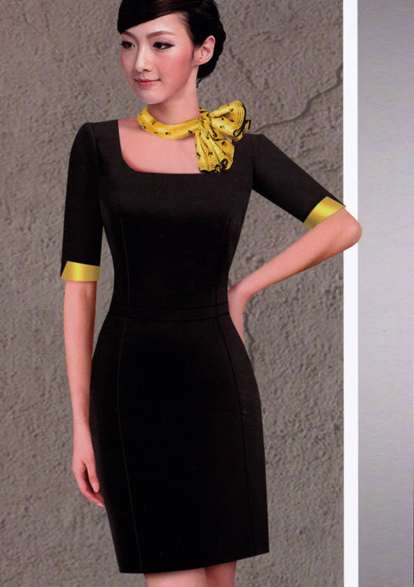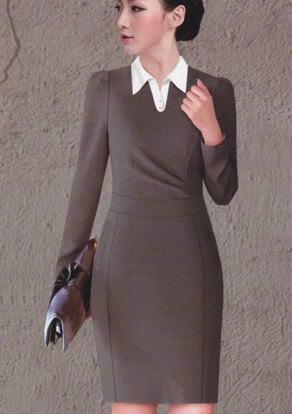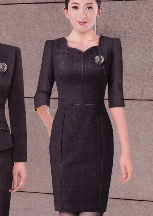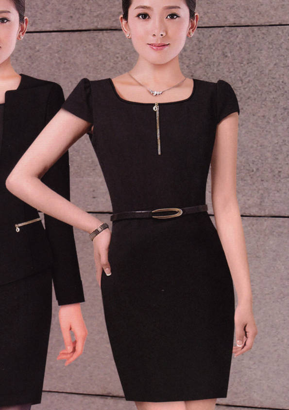 連衣裙,是指吊帶背心和裙子連在一起的服裝,是裙子中的一類。連衣裙在各種款式造型中被譽為“時尚皇后”,是變化莫測、種類最多、最受青睞的款式。一支口紅、一雙高跟鞋、一條連衣裙,女孩變成了女人。正如美國設計師DianeVon所說:要感覺像個女人,請穿連衣裙。1977年,年僅26歲的Diane設計出一條不用拉鏈的針織連衣裙WrapDress,一炮而紅,連衣裙也從此得到前所未有的關注,甚至成為1970年代的一種標志、一種文化現象,并成為國際時尚界無法復制的經典。我們這里提供定制的連衣裙是屬于時尚職業裝一類的連衣裙。