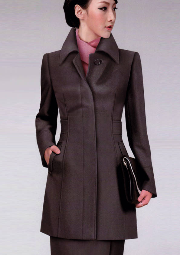 女式大衣約于19世紀末出現,是在女式羊毛長外衣的基礎上發展而成,衣身較長,大翻領,收腰式,大多以羊毛、羊絨作面料首選。女式大衣一般隨流行趨勢而不斷變換式樣,無固定格局,如有的采用多塊衣片組合成衣身,有的下擺呈波浪形,有的還配以腰帶等附件。修身大衣具有較好的瘦身效果。中長款大衣,收腰的設計會讓下半身顯得更修長。富有精品感的大衣,既可以穿得運動、休閑,也可搭配正裝出席正式場合;如果搭短裙、短褲也一樣非常時尚摩登。